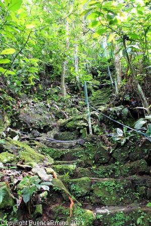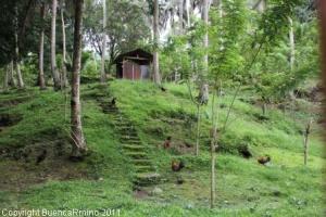 As for me, always a taker for a good story and a lover of nature, I was mostly excited at the perspective of spending a week-end in the mountain, enjoying the fresh air far from the unbearable pollution of Manila. The first time I finally got there with Jeannie, we met a fantastic story-teller who would rant on and on about the mountain spirits, dwarves, elementals and even UFOs making appearances in this “New Jerusalem”. Never mind the fact that the guy got a bit carried away in his own tales. For me, what made this experience memorable was the deep yet fun conversations with my friends, the walks in the mountain and the practice of yoga on a balcony overlooking the landscape. Jeannie’s house was perched high above the forest, and from there the view was breathtaking. As we went through the various yoga movements, I was enthralled by the smell coming from the flowers of a rare vine, the waves of green foliage filling the whole space all the way to the horizon and the view of the Mount Salakot just on the other side of the slope. Far from being the idyllic quiet spot in the mountains, the place was vibrant with the presence of numerous animals, birds and insects whose voices came together in a noisy background. In the middle of the night, for no apparent reason, and the sunrise being still hours away, roosters – dozens of them – would start crowing, as if sounding the alarm for some mysterious presence, thus waking up all the dogs who would start barking furiously for hours. In the morning, exhausted, I spent an hour looking at a procession of ants going up and down a branch, my eyes moving ever more slowly until I was captivated by a drop of water bending a leaf under its weight. I became aware of all the nuances of green, as I walked down the moss-covered steps carved in the old volcanic reddish stone. The place was eerie. It reminded me of the strange island where Tintin and his companions are taken hostage in the album “Flight 747 for Sydney”. The comparison was not entirely absurd, as I was told the next morning there were some rebels hiding on the other side of the mountain. UFOs, on the other hand, did not manifest themselves.
