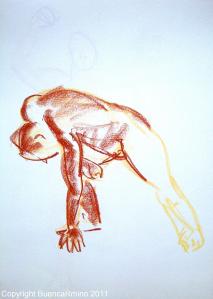 Aujourd’hui, j’en suis sûr, ce qui me sépare d’eux, c’est ce qui les sépare du corps. Du corps et de ce qu’il dit. Un manque d’ambition, pour ne pas dire une forme de lâcheté face à l’intensité du corps, à ses silences, à toute cette vie violente qui le traverse. La pratique régulière du dessin, même en l’absence de progrès notable, a pour effet de transformer le regard : dans le métro, dans le bus, l’oeil s’arrête sur une main, sur l’angle d’une tête, la posture déséquilibrée d’une hanche, et cela dit quelque chose. La main vit. La hanche crie. Les muscles se tordent sur mille douleurs, essorés comme de vieux torchons. Ça voudrait danser, mais ça n’ose… Parler avec son corps au milieu de la ville, parmi les passants, les transports (publics, amoureux?). Et pourquoi non? Pina Bausch, Wim Wenders l’ont fait.